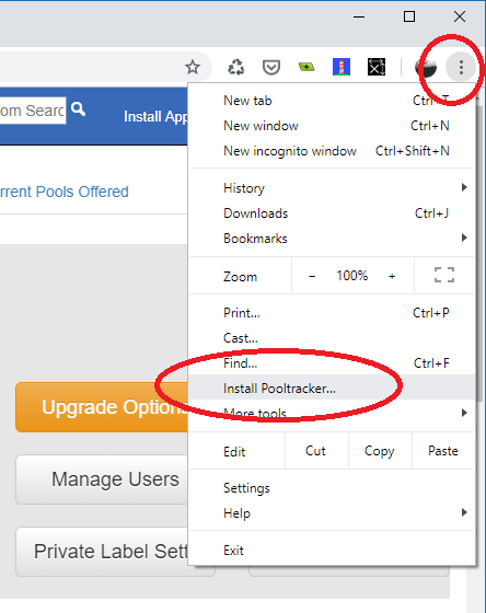 Click the menu icon in upper right corner, then "Install Pooltracker"